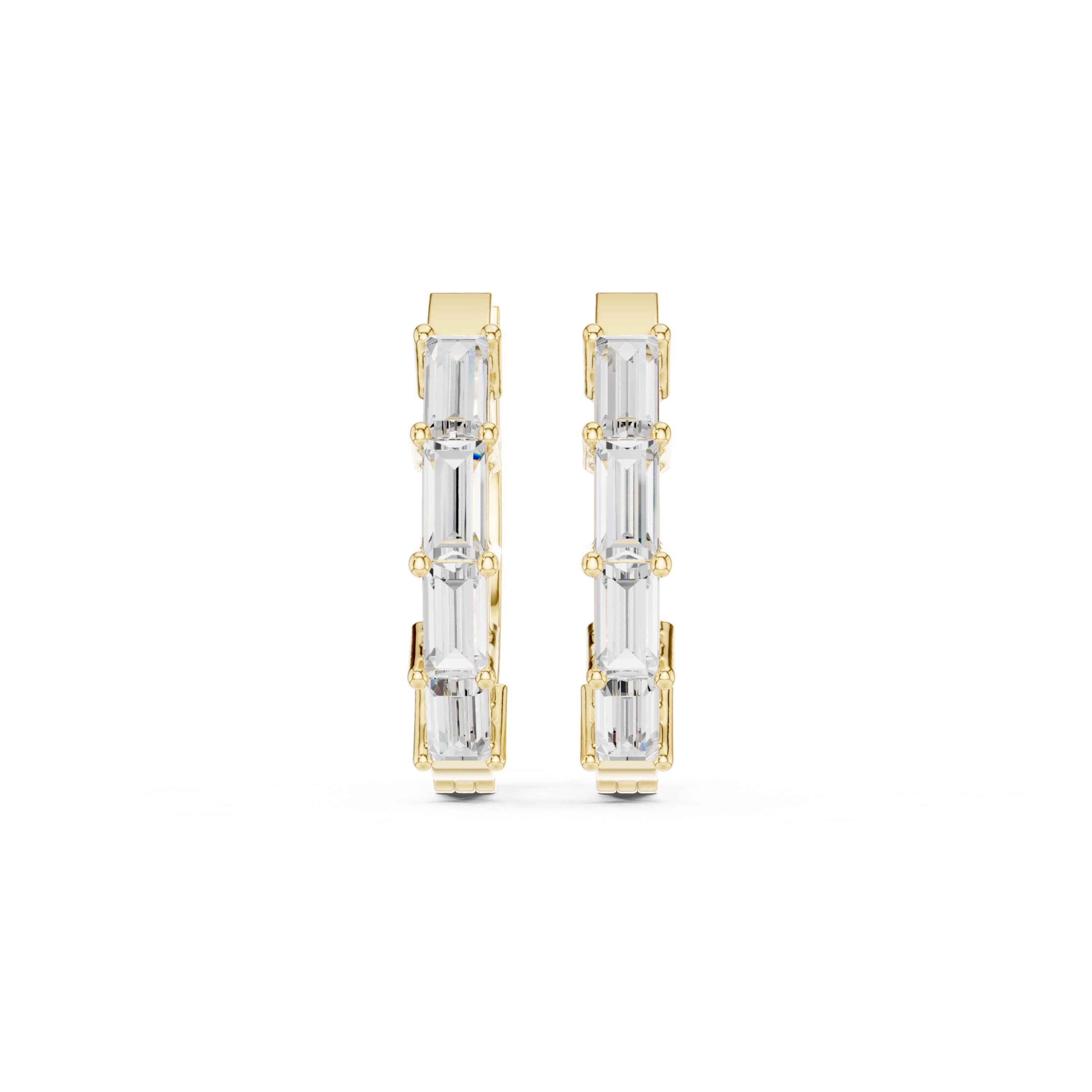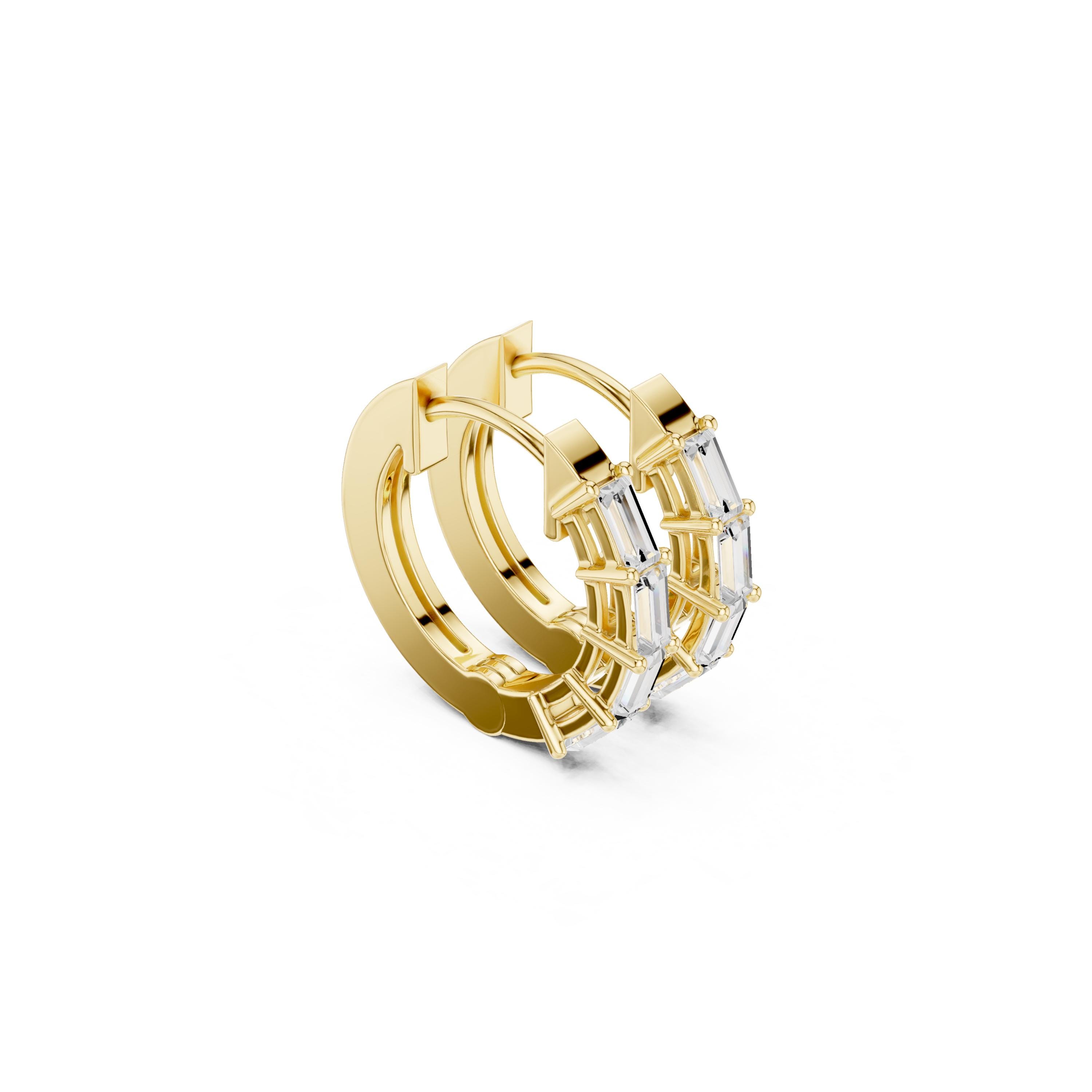 Add timeless sparkle to your style with these elegant 18K Gold Moissanite Hoop Earrings. Featuring premium baguette-cut moissanite stones set in solid gold, these dainty huggie hoops are perfect for everyday wear or special occasions.