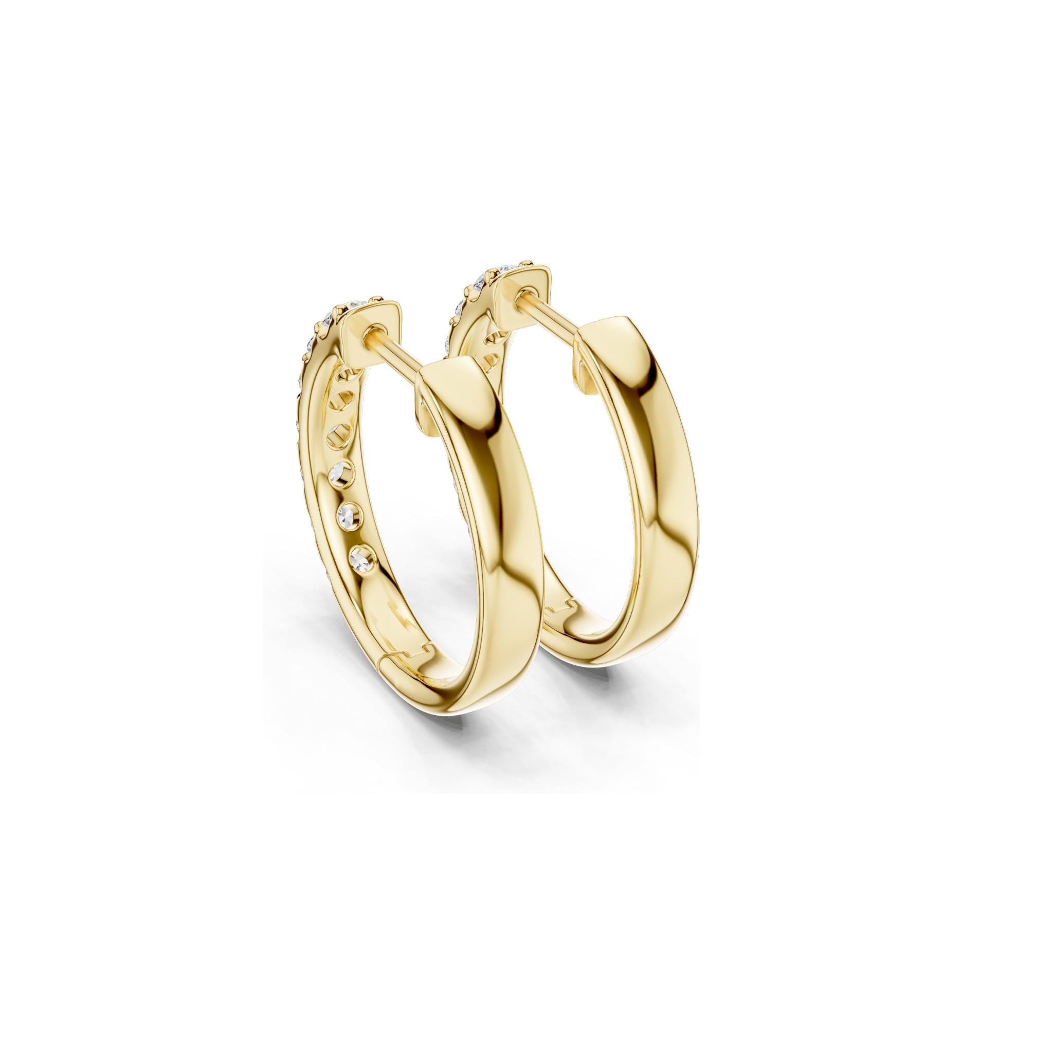 Discover the timeless elegance of our gold hoops earrings, featuring a graceful curved design that beautifully complements any style. Crafted with 18K gold and adorned with sparkling moissanite diamonds, these earrings bring a touch of luxury and brilliance to your everyday look. Whether dressing up for a special occasion or adding sophistication to daily wear, these curved hoops are a versatile and dazzling choice.