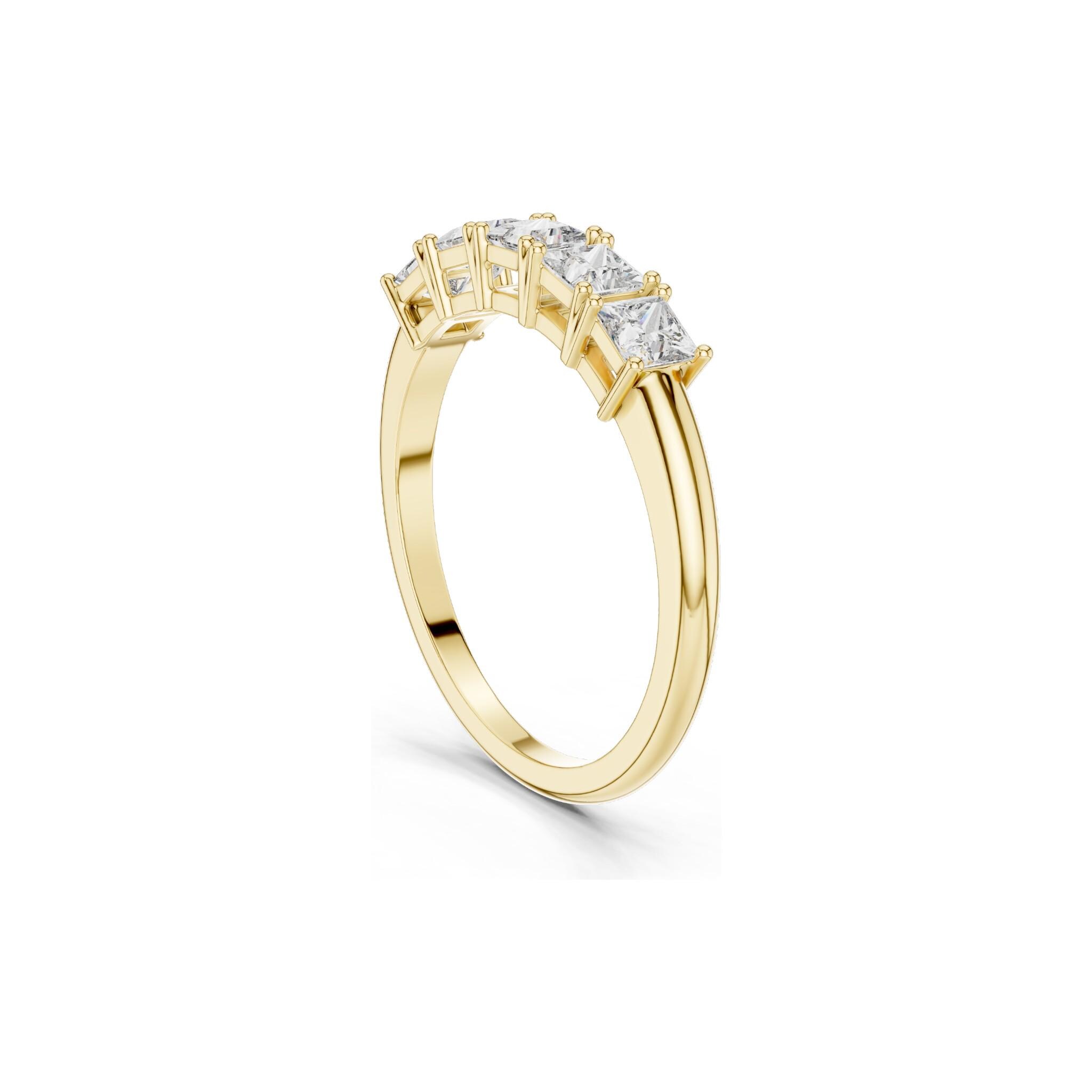 Discover the understated elegance of this solid gold ring, featuring five princess cut stones that capture light with every movement. Designed for those who appreciate a minimalist gold ring that combines delicate craftsmanship with modern ethical values, this piece shines beautifully whether worn alone or as part of a stacking rings set. Each stone’s brilliance is enhanced by the dainty band, making it a perfect gift for her or a timeless addition to your collection.